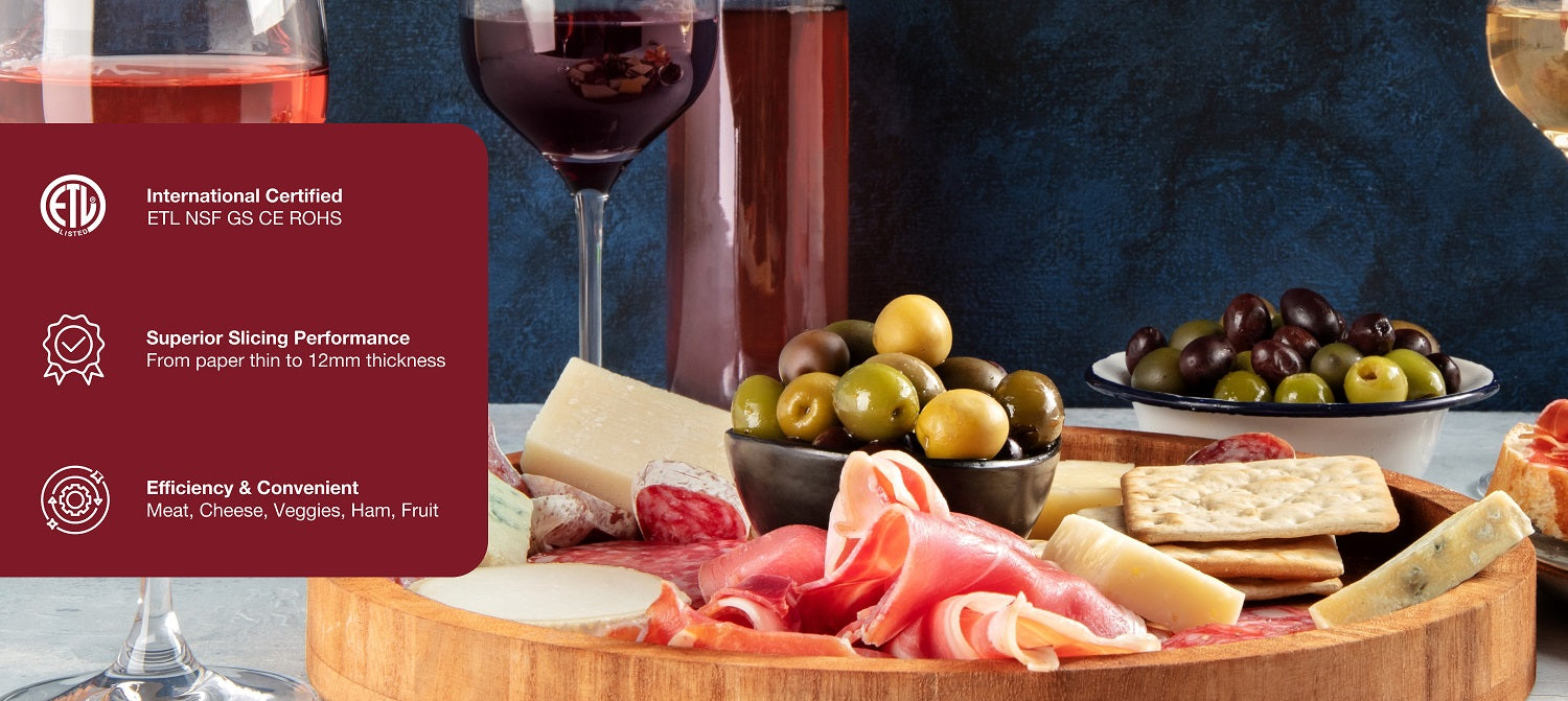 Beswood slicer is perfect for commercial use in restaurants, commercial kitchens, cafes and in-home use as well. It is able to slice boneless meat, cheese, ham, bread, veggies with high standard performance.